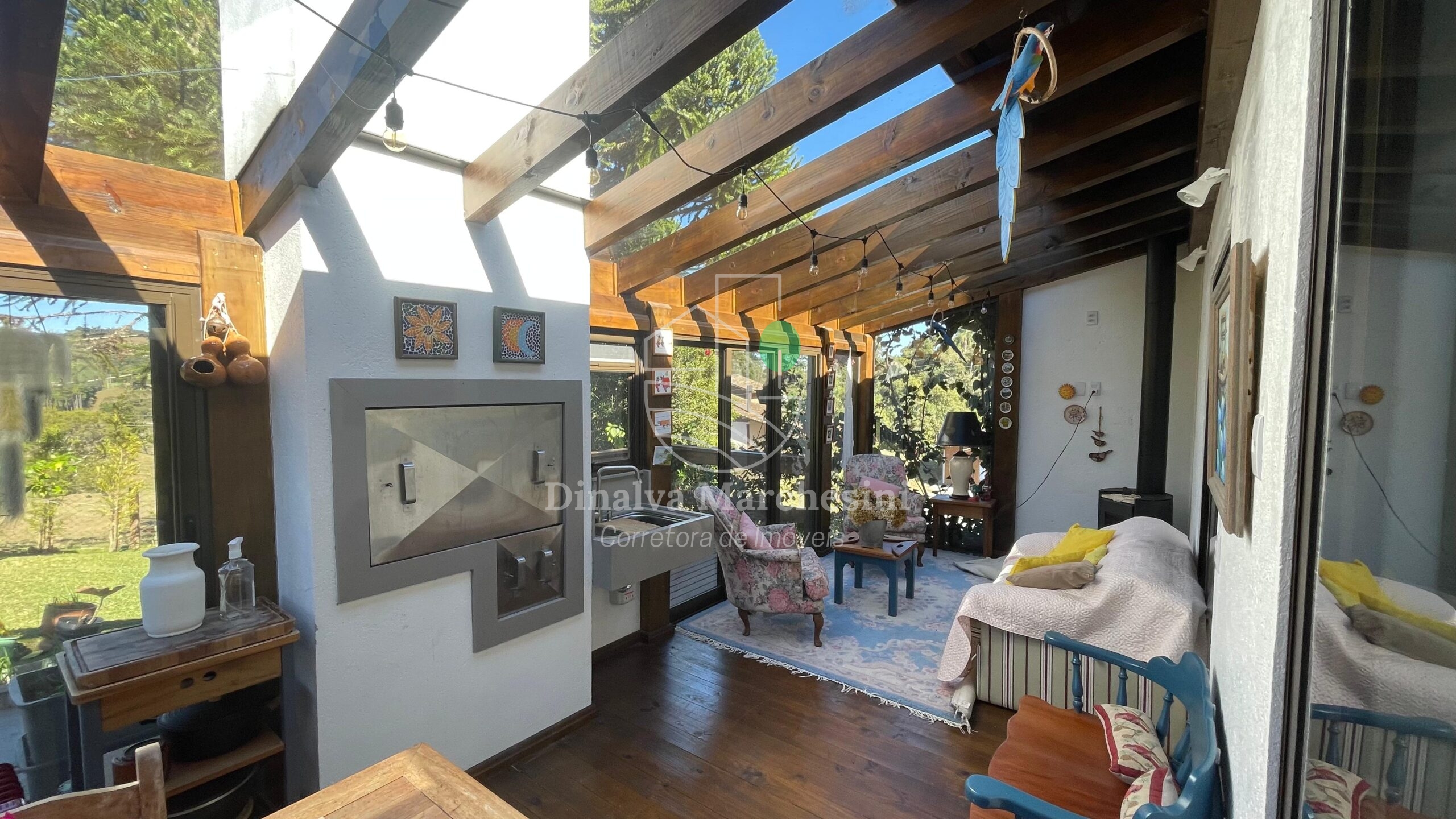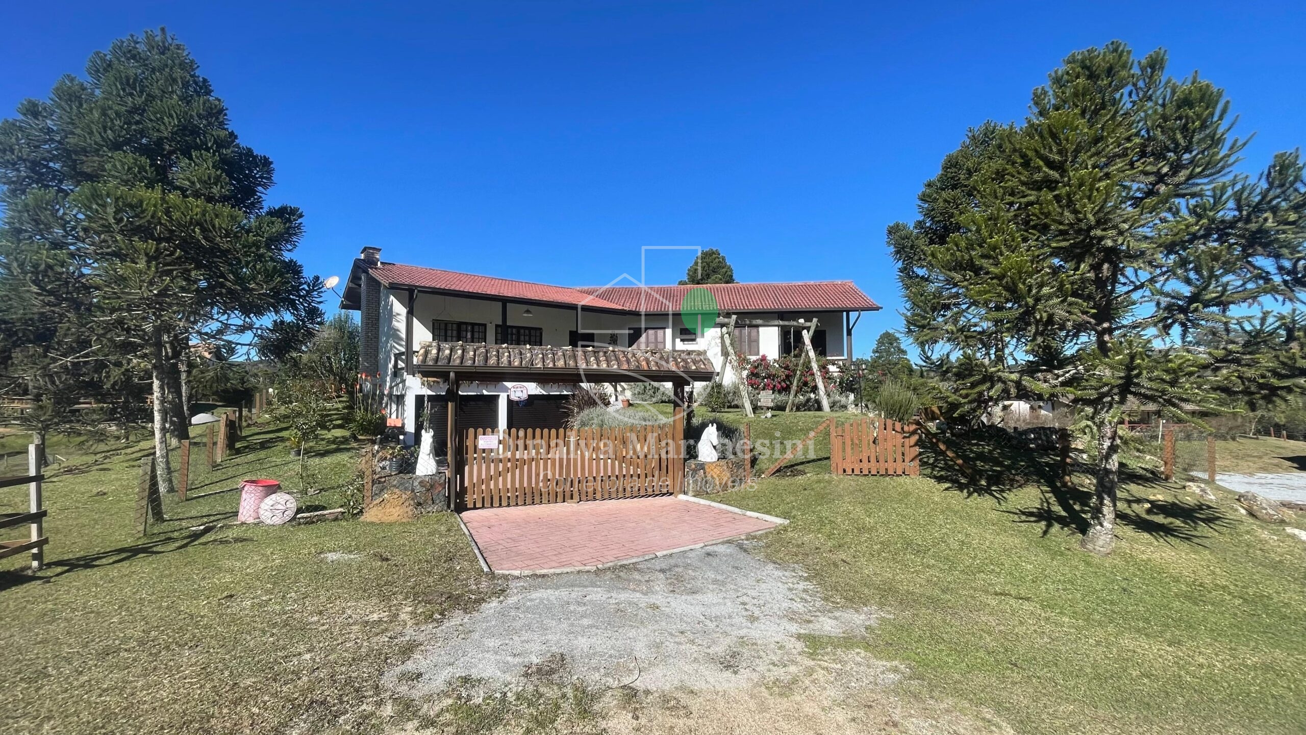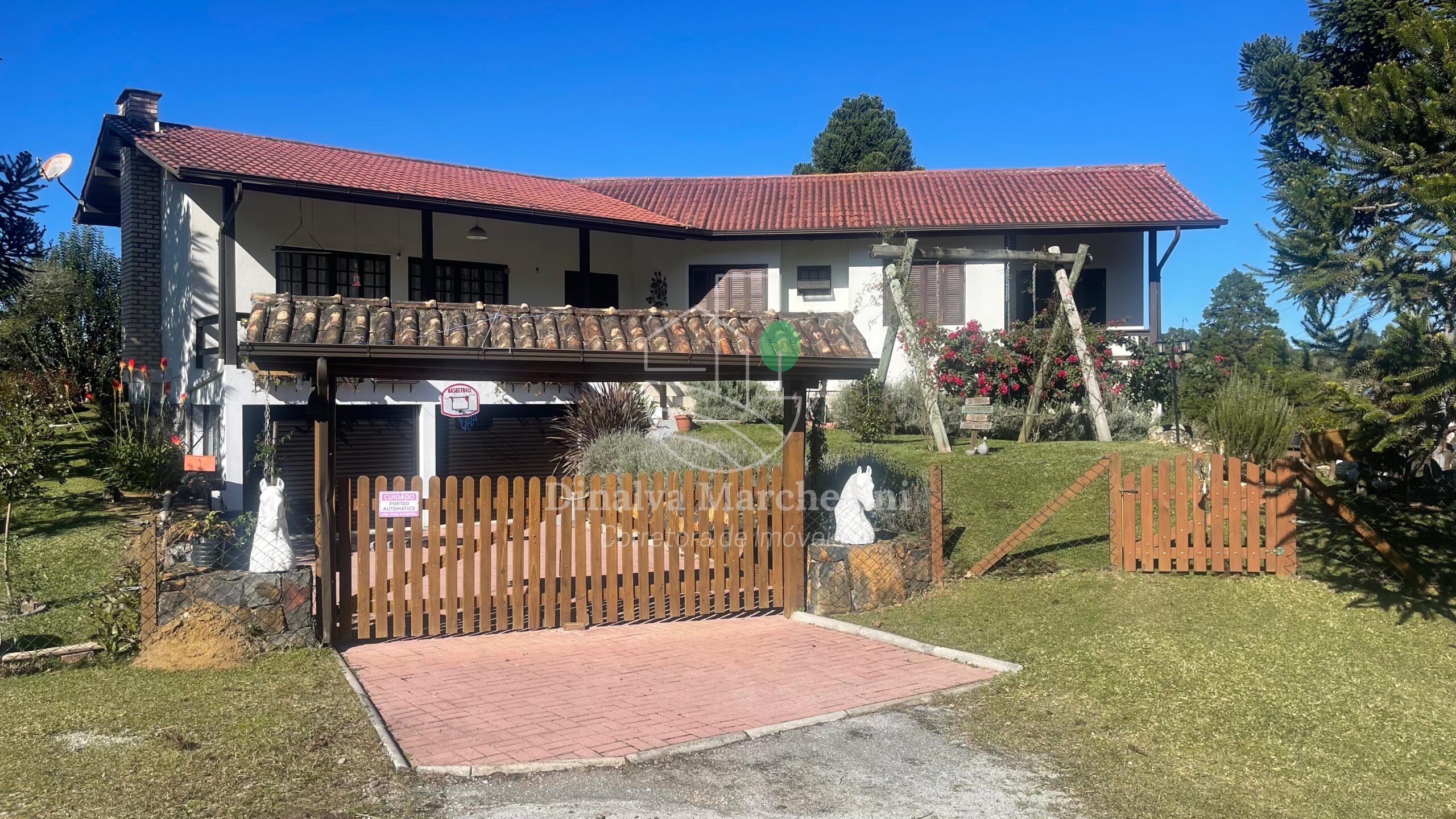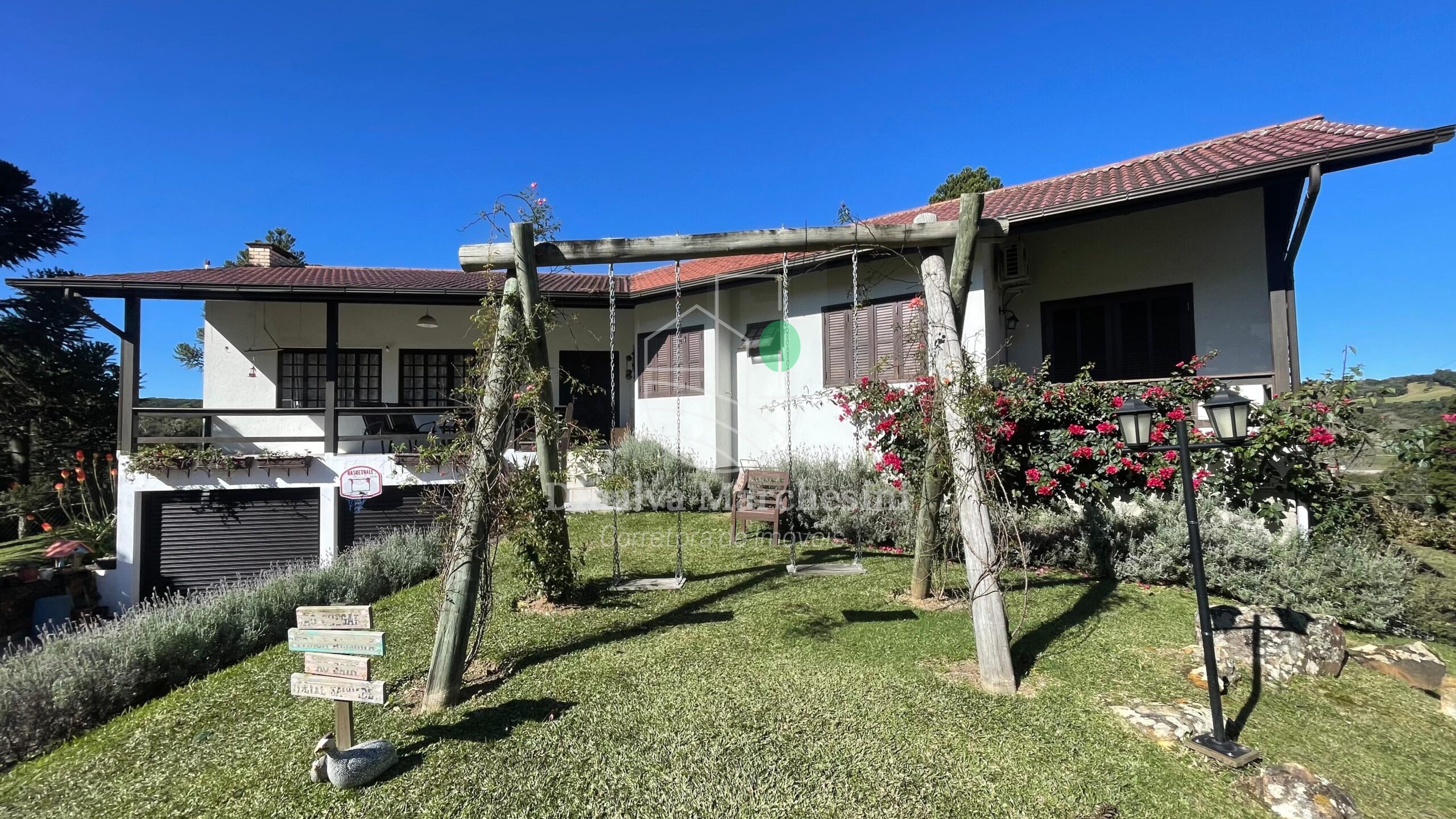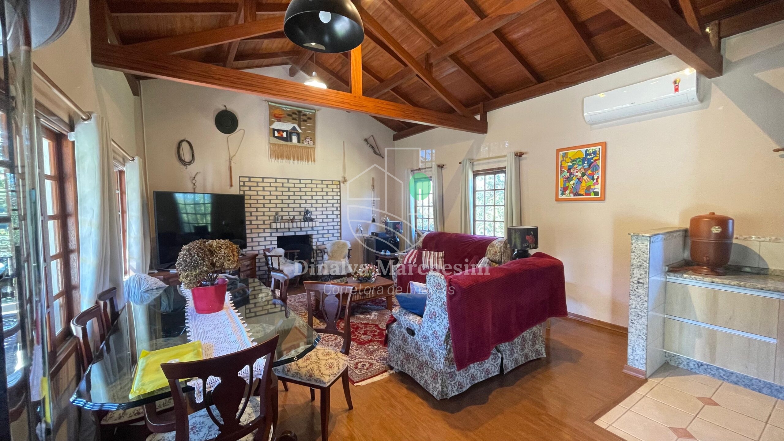 Casa em alvenaria no condomínio Portal da Serra, em Rancho Queimado, a apenas 5 km do centro da cidade. Acesso totalmente asfaltado, pela BR 282. Localização privilegiada, com incidência solar durante todo o dia.  Amplo espaço de convivência, com estar, jantar e cozinha integrados, além de espaço gourmet com churrasqueira e deck. Três dormitórios, sendo uma suíte com sacada.  Garagem para dois carros. Aproximadamente 150 m² de área construída.
