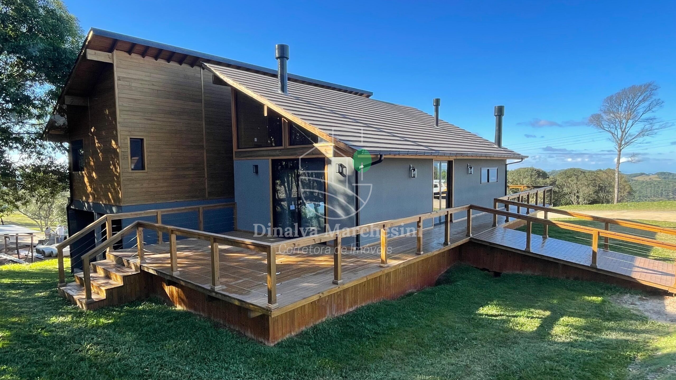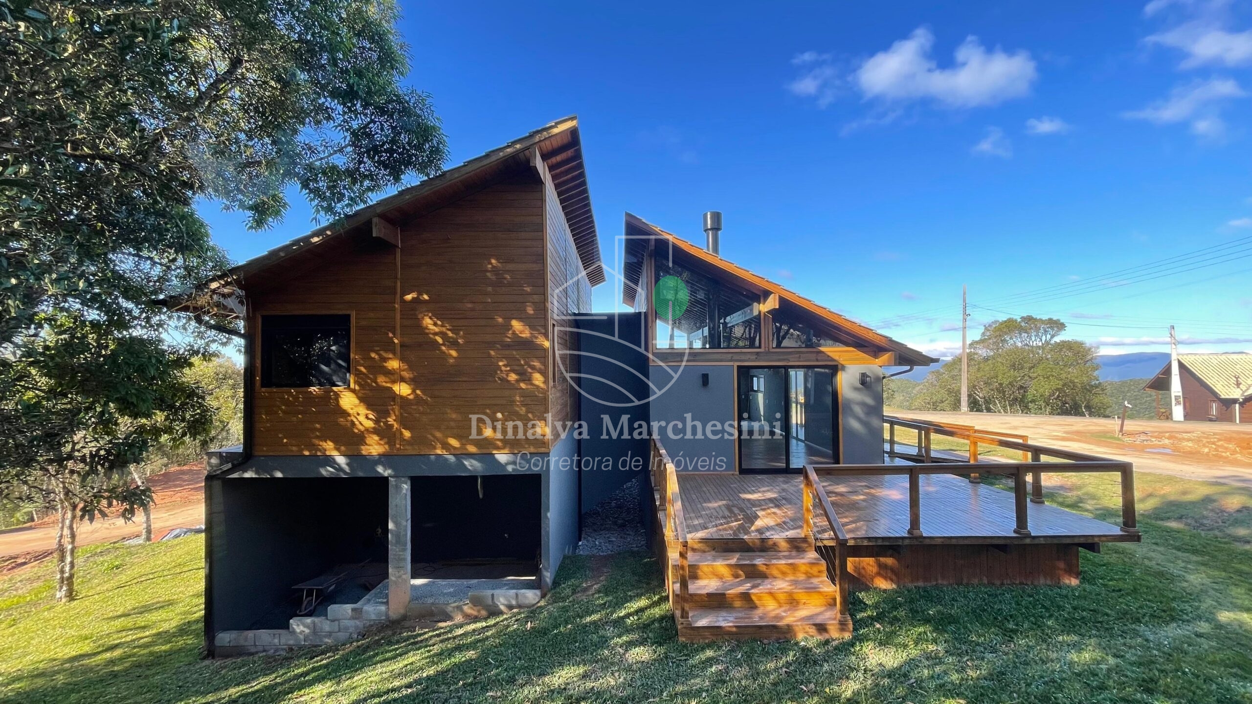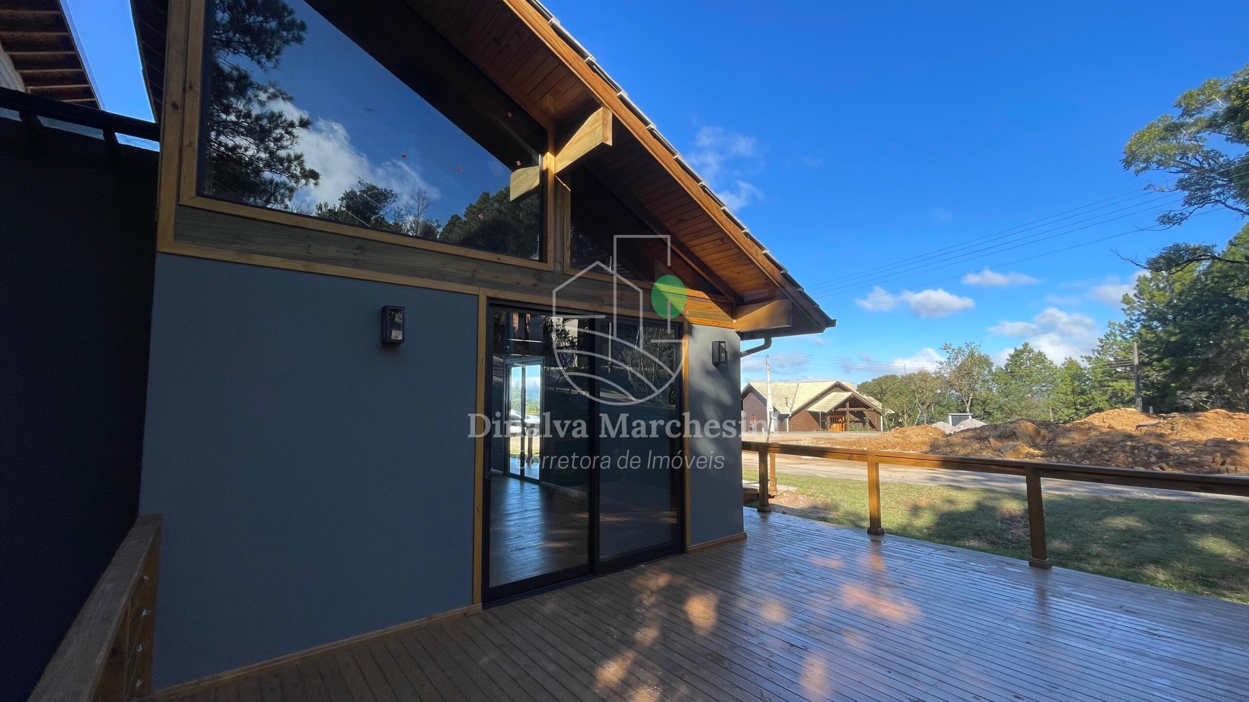 Aconchegante Casa de campo em Condomínio fechado em Rancho Queimado, constituída em madeira, alvenaria e bastante vidro, valorizando a belíssima vista e natureza local..