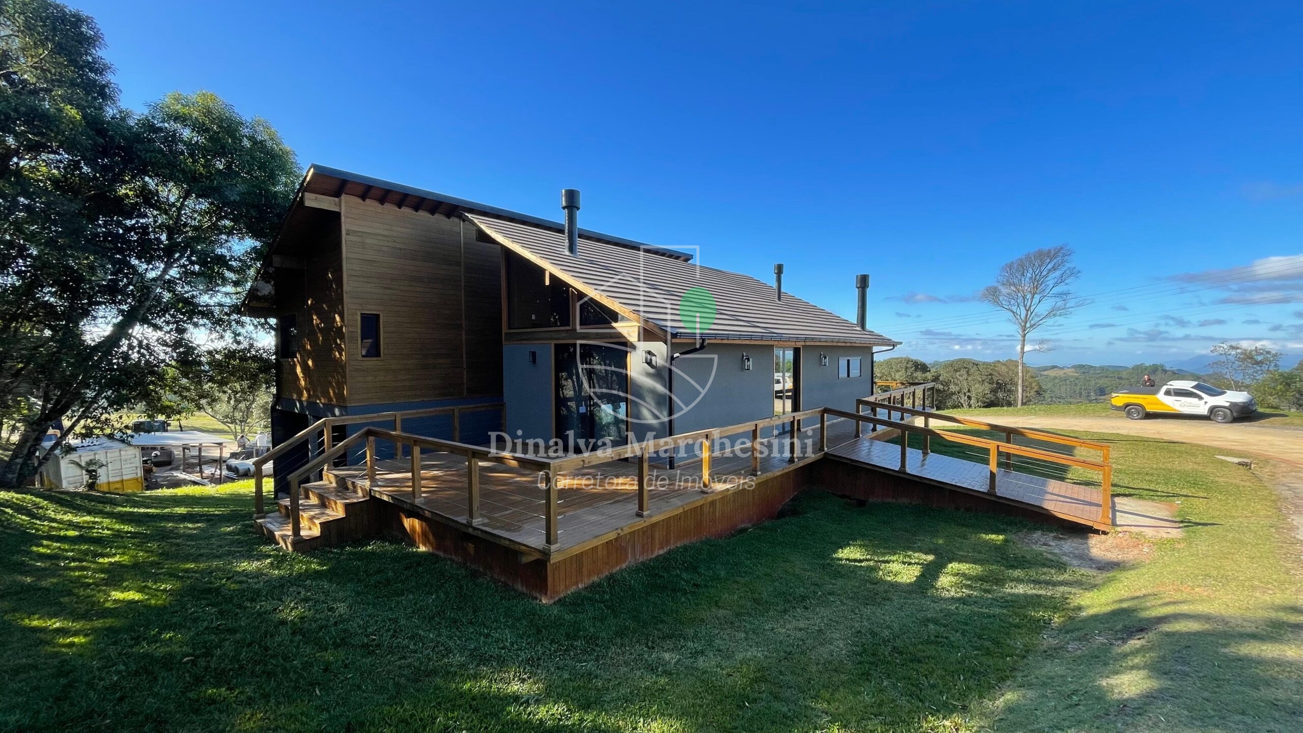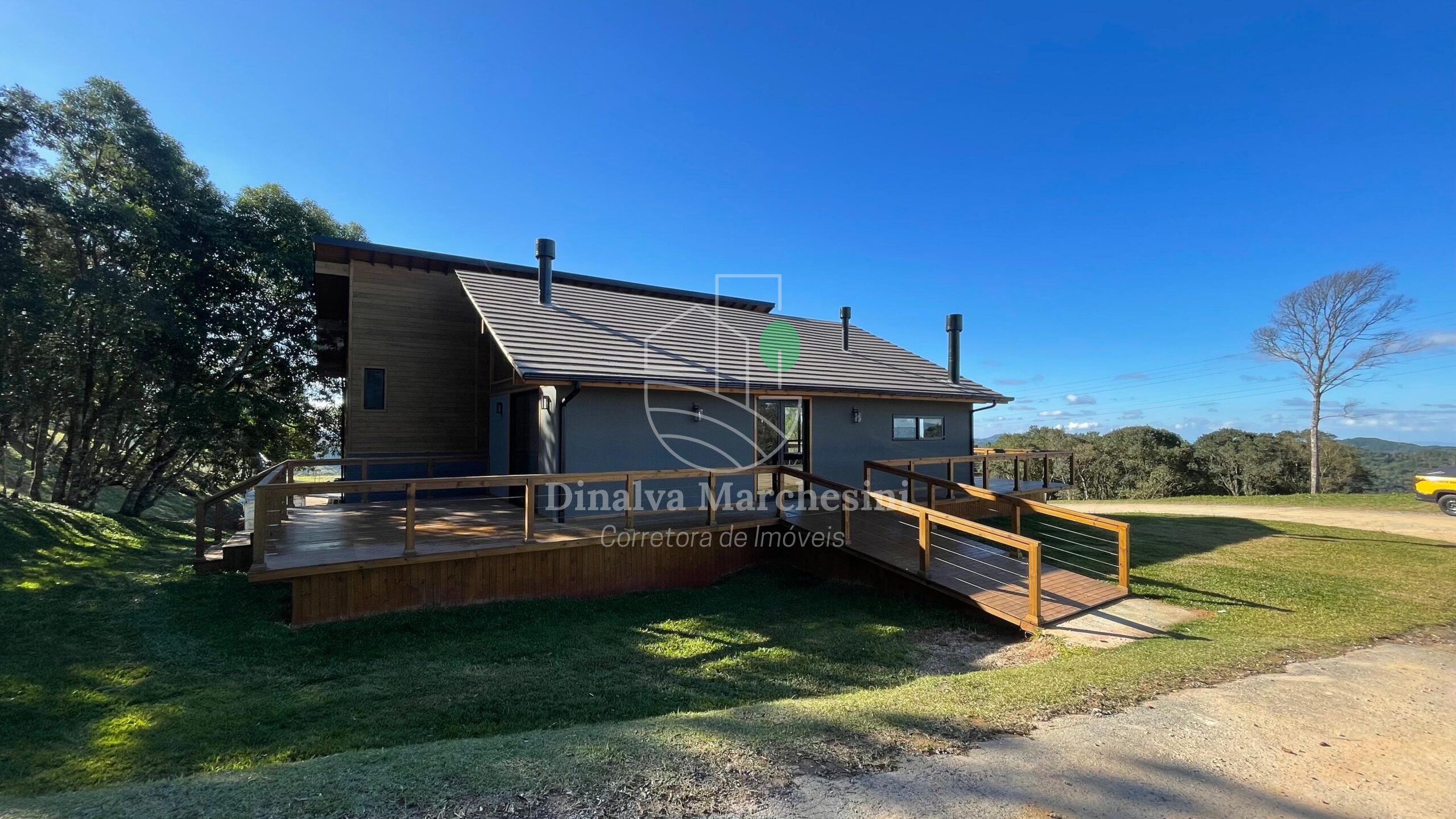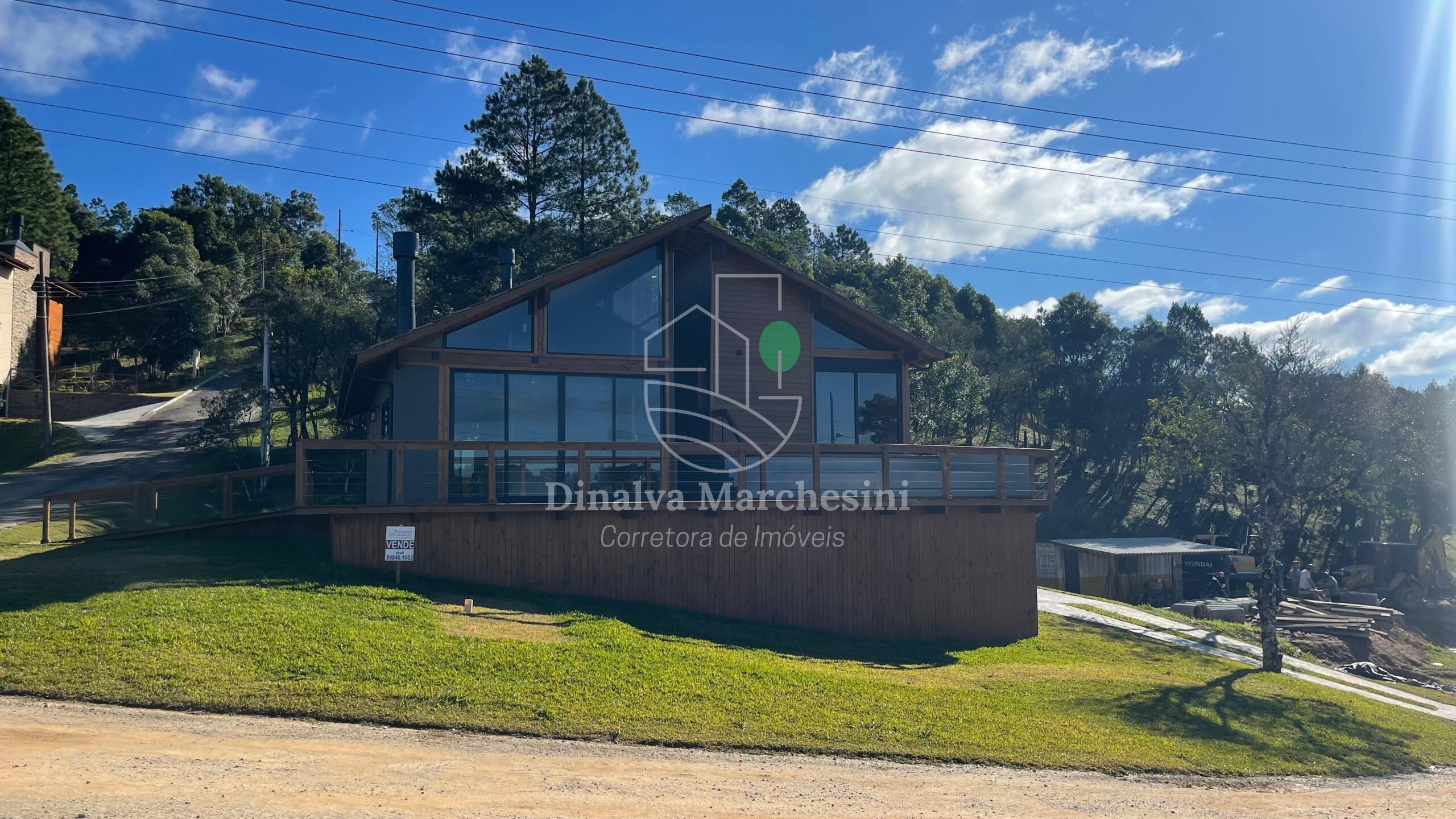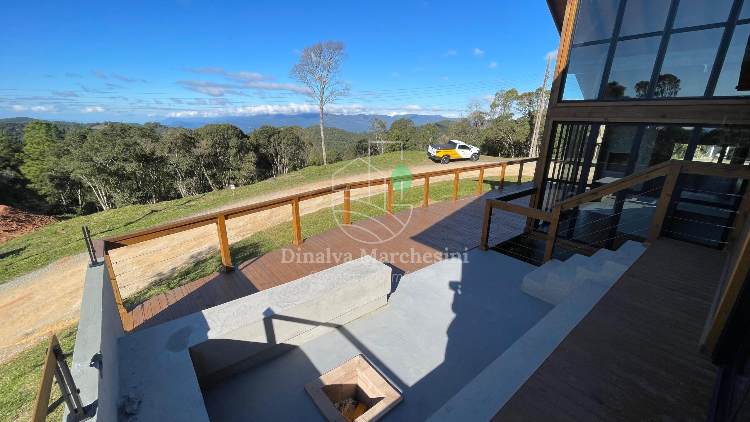 Aconchegante Casa de campo em Condomínio fechado em Rancho Queimado, constituída em madeira, alvenaria e bastante vidro, valorizando a belíssima vista e natureza local..